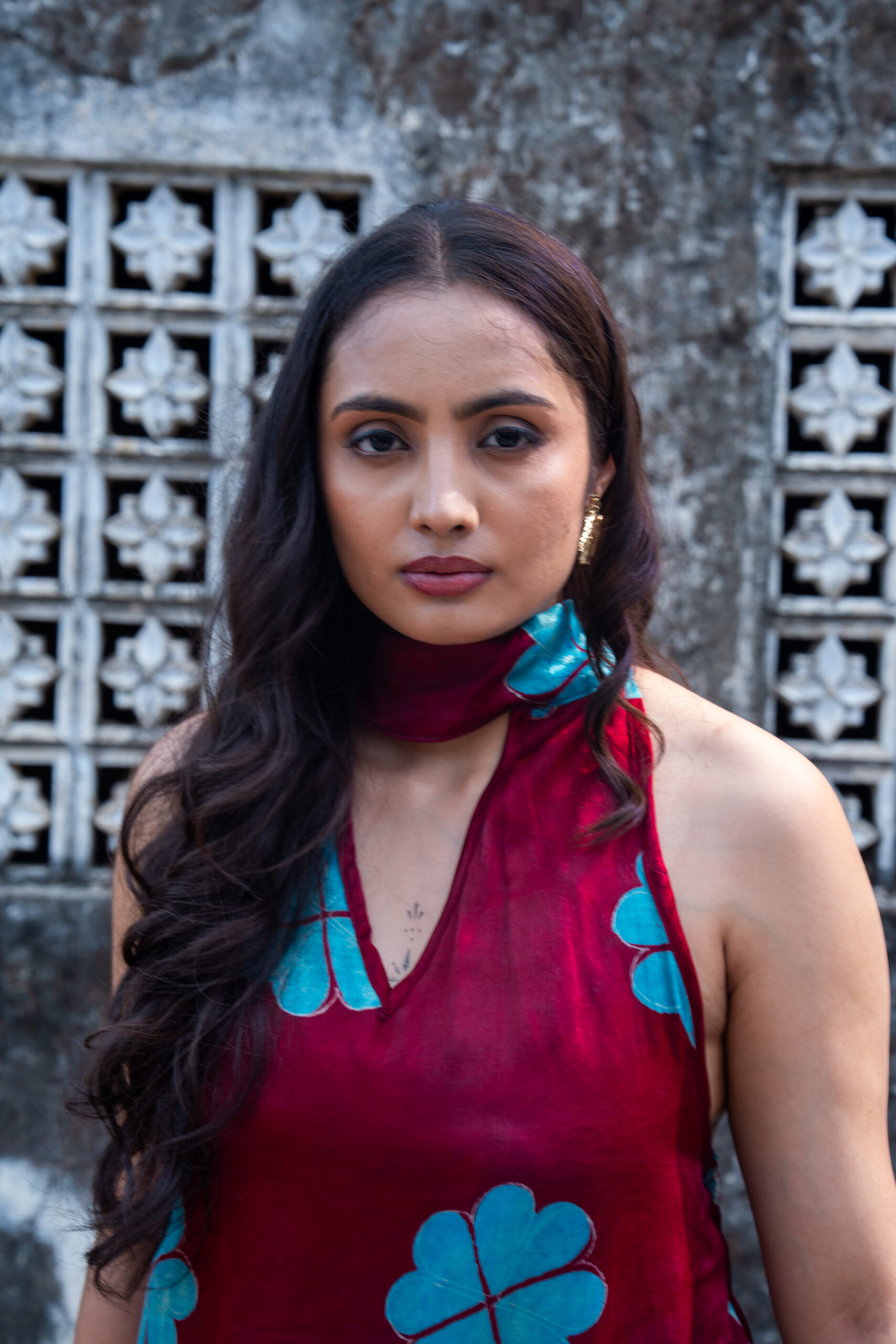 Crafted in luxurious Mashru Silk, the Show Shaa Dress is an ode to bold elegance. Featuring our statement Dil Phool print, its vibrant motifs add a playful yet striking edge to the silhouette.